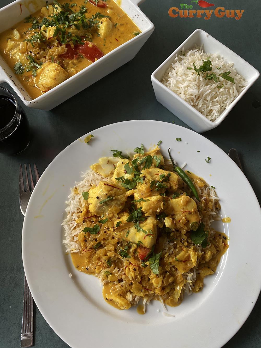 Your curry will still taste very good but I like it with large pieces of cod, drizzled with the sauce on top of a bed of steaming hot Basmati rice.