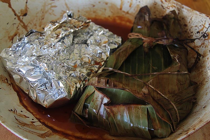 As I doubt many of you will have banana leaves in your freezer, just use foil. However, if you do, try this recipe with them.
