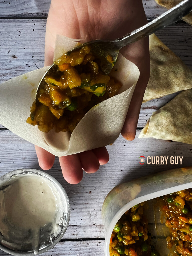 The authentic way to make samosas are with homemade wrappers, however, in most curry houses, they are made with ready-made samosa wrappers.