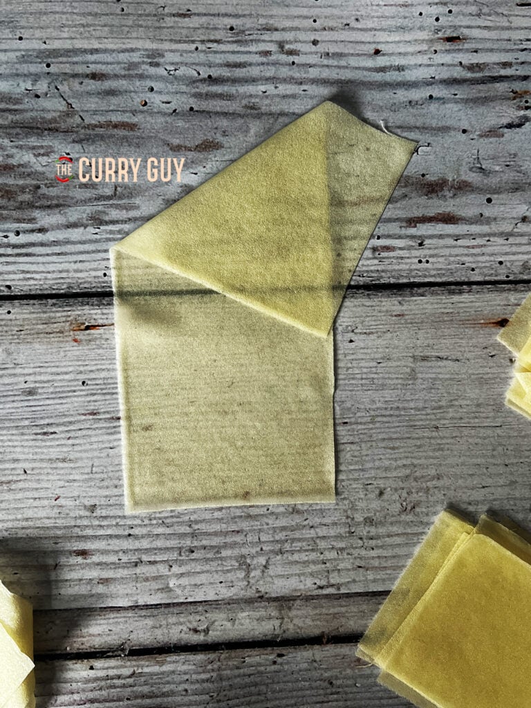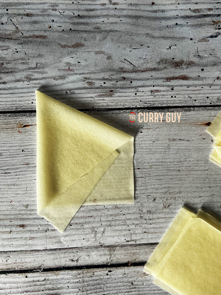 Whether you're using homemade pastry or ready-made wrappers, the images below show you just how to fold them into the perfect samosa shape for your air fryer. You can also watch this YouTube video where it is demonstrated.