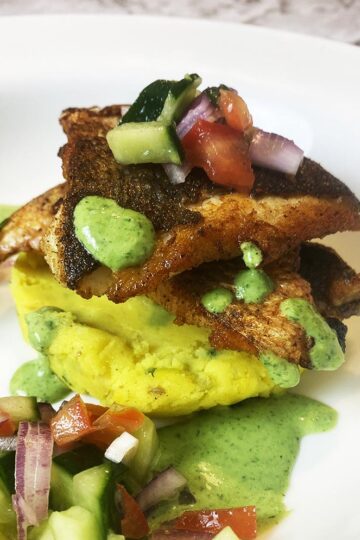 Pan Fried Sea Bass with Masala Mash